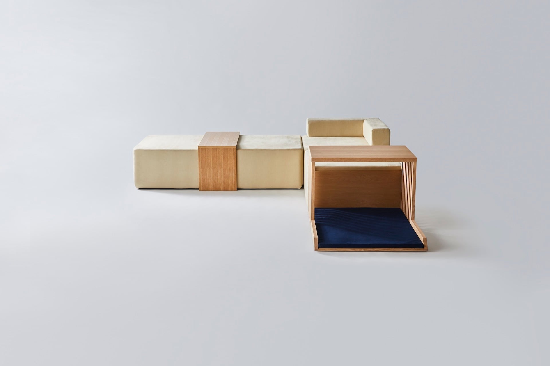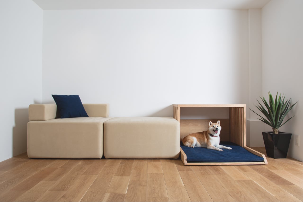 天然木を配し、インテリア性を高めたペットフレンドリーなソファ。